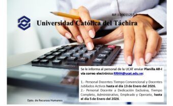 Presentación planilla AR-I ENERO 2026 A todo el Personal de La Universidad Católica del Táchira. 1) Para dar cumplimiento con lo establecido …
