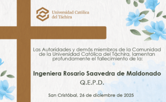 Las Autoridades y demás miembros de la Comunidad de la Universidad Católica del Táchira, lamentan profundamente el fallecimiento de la: Ingen …