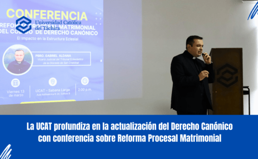 El pasado viernes 13 de marzo, el Aula de Usos Múltiples de la Universidad Católica del Táchira (UCAT), sede Sabana Larga, fue el escenario de la conferencia titulada “Reforma Procesal Matrimonial del Código de Derecho Canónico”. Evento, organizado por la Facultad de Ciencias Jurídicas y Políticas.