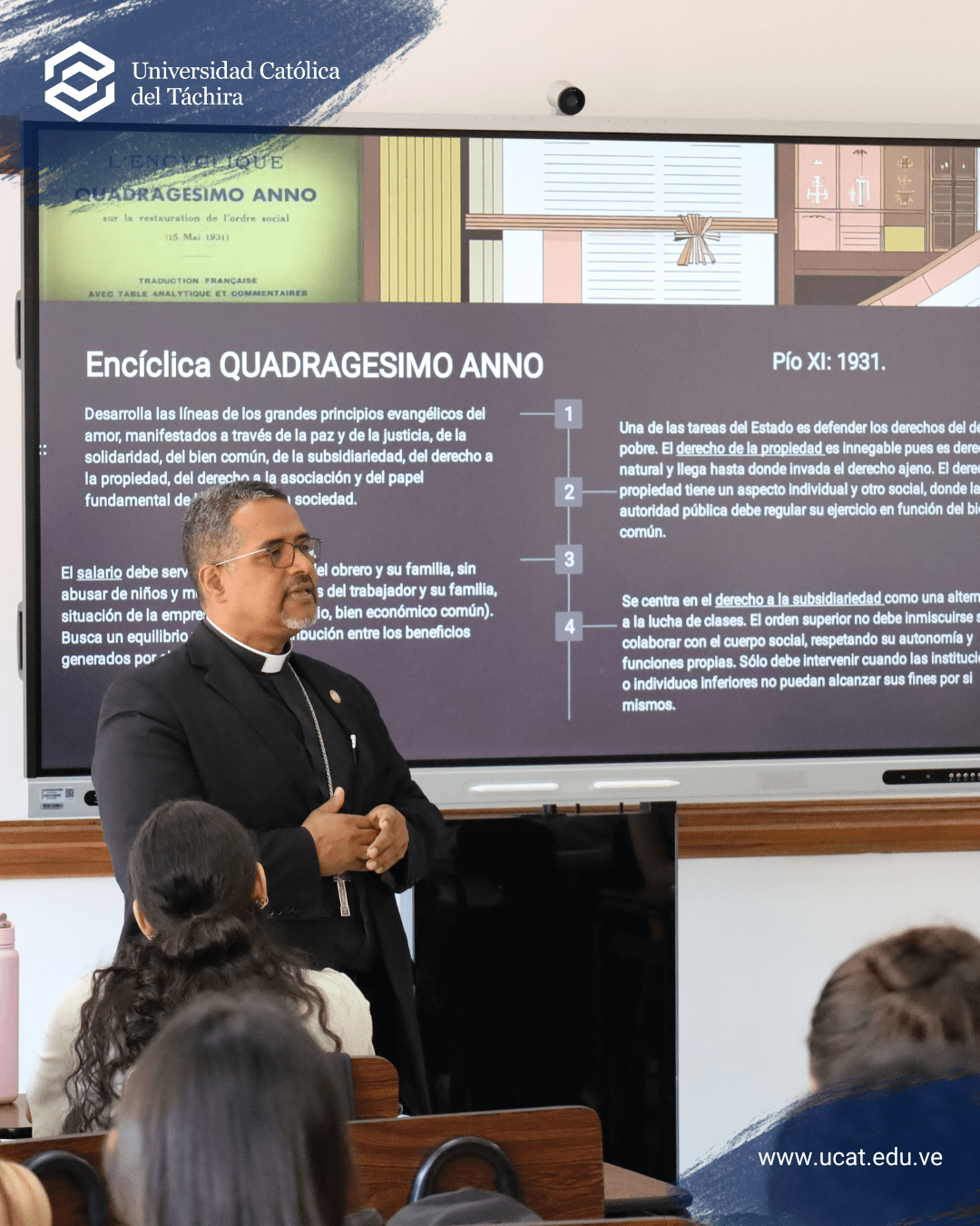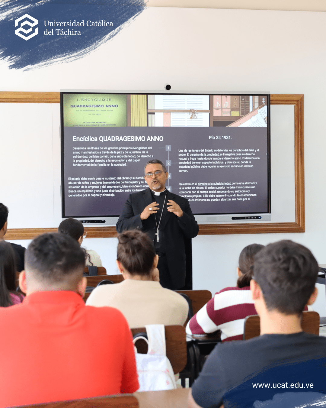 En el recorrido, en el que le acompañaron los miembros del Consejo de Administración y otras autoridades universitarias, Mons. Lisandro tuvo ocasión de participar de una clase de la asignatura Pensamiento Social para estudiantes de la Facultad de Ciencias Económicas y Sociales. En ella explicó, como Pastor de esta Iglesia Particular, la importancia de la Doctrina Social de la Iglesia para la vida personal y profesional de los estudiantes, enfatizando la necesidad de llevar a la práctica cotidiana todos esos conocimientos, que son una forma de comunicar vida desde la fe, que impulsa esta gran obra de la Iglesia.
